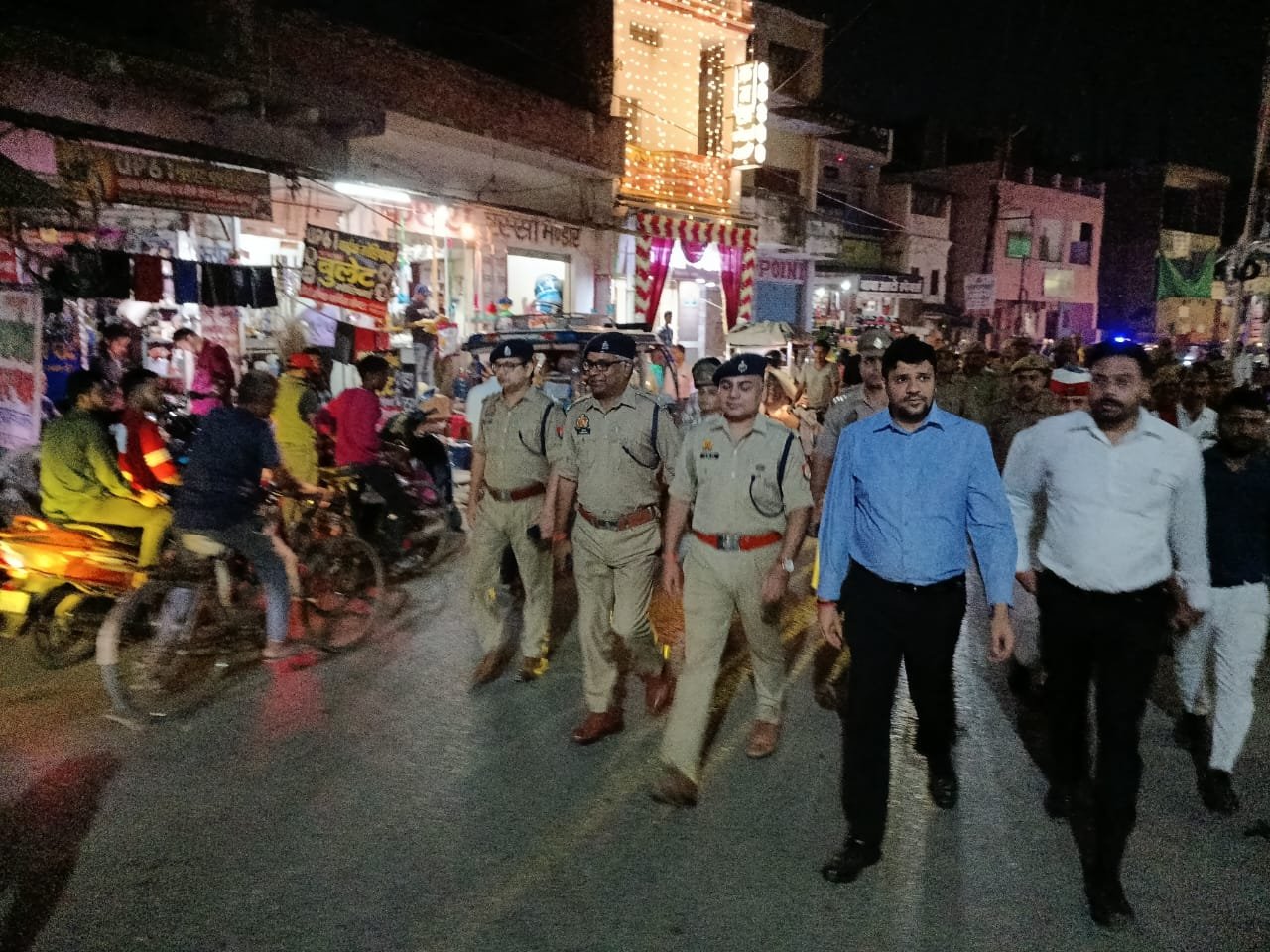 गाज़ीपुर : धनतेरस पर्व तथा आगामी त्योहारों दीपावली, छठ पूजा आदि के दृष्टिगत जनपद में अपराध नियंत्रण व सुदृढ़ कानून व्यवस्था बनाए रखने हेतु जिलाधिकारी अविनाश कुमार एवं पुलिस अधीक्षक डॉ इरज राजा ने थाना कोतवाली , विश्वेश्वरगंज चौकी से मिश्र बाजार, लाल दरवाजा, टाऊन हाल, चीतनाथ, नखास तिराहा, एमएएच इण्टर कालेज, आलम पट्टी, रौजा आदि प्रमुख बाजारों /चौराहों मुख्य मार्गों पर फ्लैग मार्च/पैदल गश्त कर जनमानस को सुरक्षा का एहसास कराया गया । इसी क्रम में अधिकारी द्वारा लंका मैदान में लगे आतिशबाजी बाजार का भी भ्रमण किया गया तथा सुरक्षा मानदंड की जांच की गई।