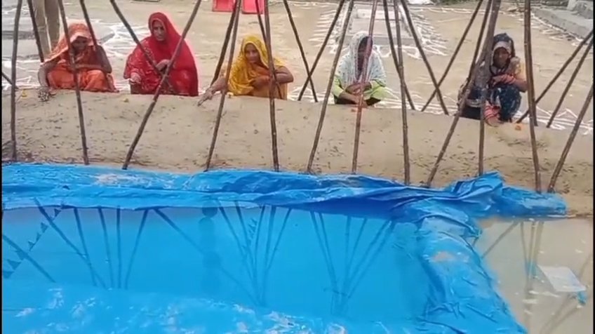 जेल में व्रती महिलाओं के पूजन के किये बनाया गया तालाब।